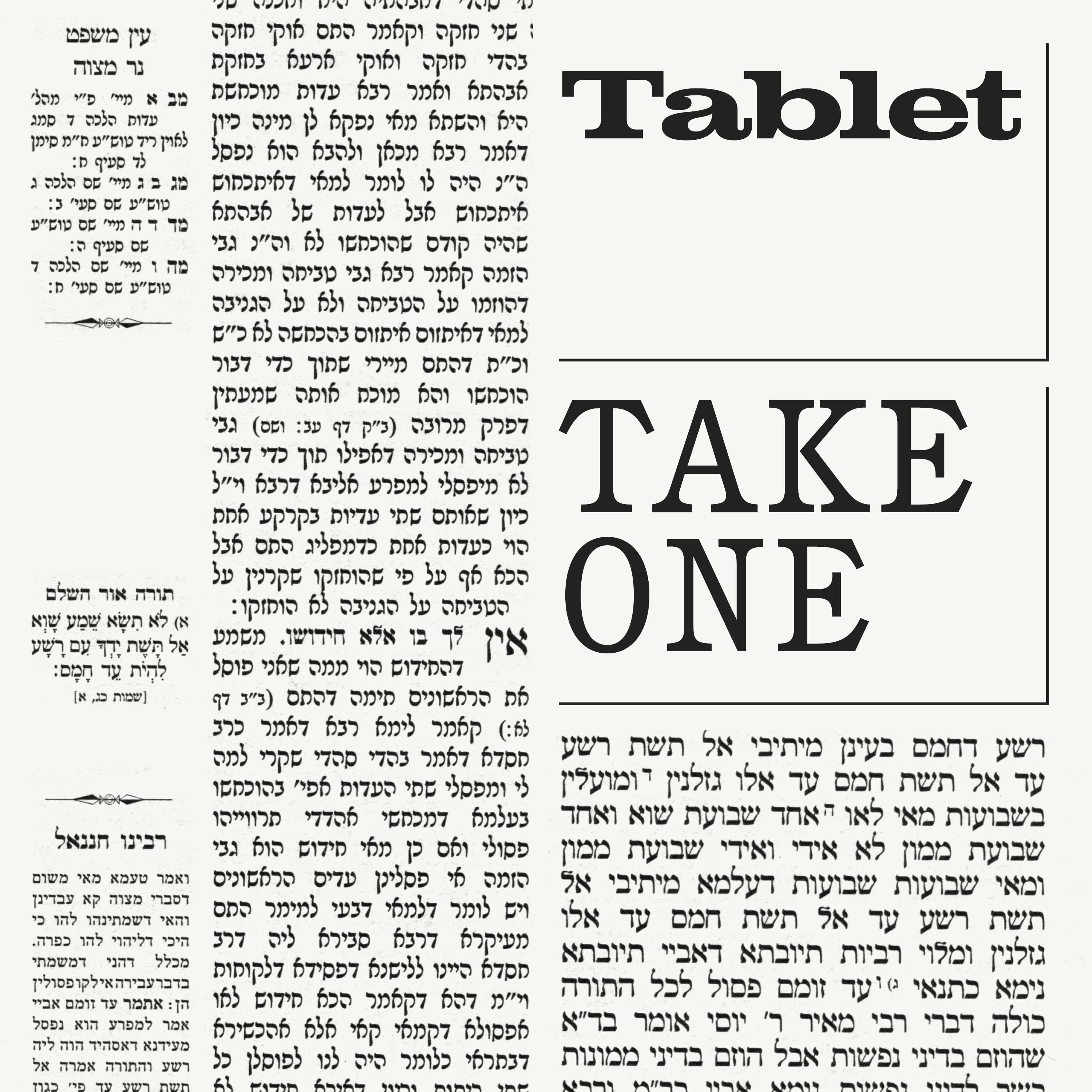 As Jews around the world begin a new seven-and-a-half year cycle of Daf Yomi, reading the entire Talmud one page per day, Tablet Magazine's new podcast, Take One, will offer a brief and evocative daily read of the daf. We launch the cycle with a brief introduction to the Talmud at large before diving into the text with Tractate Berakhot, page 2, and a meditation on the meaning of time, why you might want to think twice before you Netflix and chill, and how all these rabbinic strictures can help us make sense of our modern, messy lives.
