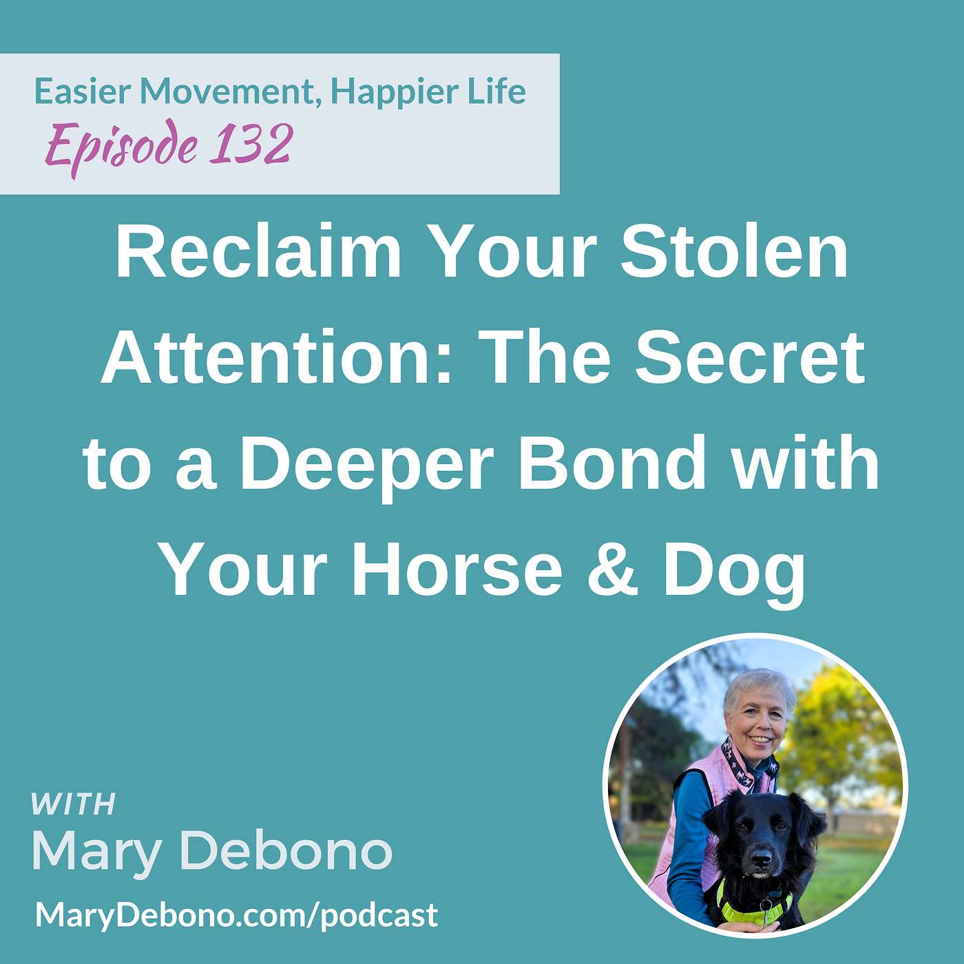 Do you want to create a life of movement, connection, and well-being for you and your animals? Whether you’re an equestrian, a dog lover, or both, this podcast is for you! In Easier Movement, Happier Life: For You, Your Horses & Dogs, Feldenkrais® teacher, international clinician, and bestselling author Mary Debono shares insights, tips, and techniques to help you improve movement, mindset, and connection for yourself and your animals. Each week, we explore topics like body awareness, flexibility, and balance, focusing on how these elements impact both you and your horse or dog. We’ll dive into how anxiety and tension affect both species and share gentle strategies to promote relaxation, confidence, and well-being for everyone involved. Your thoughts and emotions influence not only your own body but also your animal’s. That’s why we’ll also explore emotional awareness, mindset, and intuition, helping you build a deeper, more harmonious relationship with your horse or dog. Whether you’re helping your horse become more balanced and fluid or supporting your dog’s mobility and comfort, this podcast will provide the tools to nurture a thriving connection with your animal, improving their quality of life—and yours. Join Mary every week as she brings over 30 years of experience to help you and your animals live with greater ease, joy, and connection.