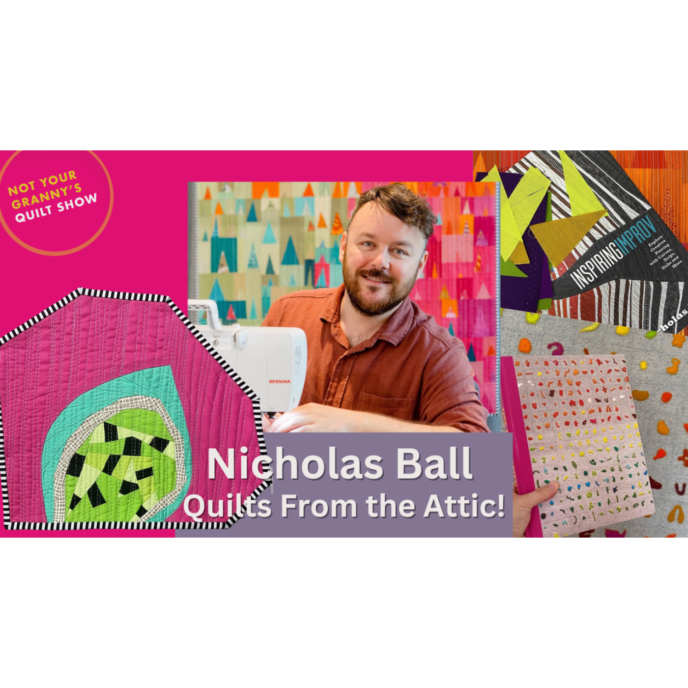 Welcome to *Not Your Granny’s Quilt Show*! This episode, we’re diving into the world of improv quilting with none other than Nicholas Ball—improv master, Lucky Spool author, Crafty Monkies educator, Bernina UK Ambassador, Aurifilosopher, and designer! 🎉 Nicholas shares his passion for exploring shape and color through improv quilting, a technique that embraces spontaneity and creativity. With two incredible books under his belt—*Use & Ornament* and *Inspiring Improv*—Nicholas has inspired quilters worldwide to break free from rigid patterns and trust their artistic instincts. We chat about his journey, his teaching experiences with Crafty Monkies, and the exciting projects he’s working on. Whether you're a seasoned quilter or just starting out, Nicholas’ insights will have you itching to grab some fabric and start experimenting! Follow Nicholas on Instagram [@quiltsfromtheattic](https://www.instagram.com/quiltsfromtheattic) to see his latest work and upcoming adventures. Tune in and get ready to stitch outside the lines! 🎙️🧵✨
