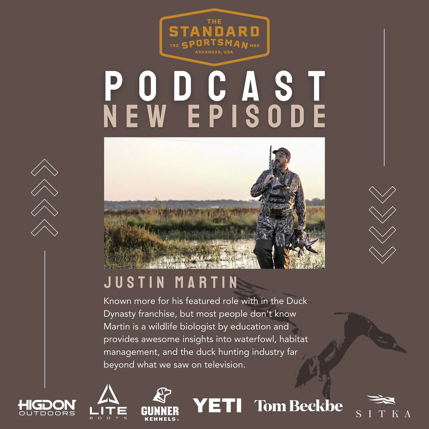You may think you know Duck Commander's General Manager Justin Martin but odds are you don't. He's known nationwide for his featured role within the Duck Dynasty franchise, but listeners may not be aware Martin is a wildlife biologist by education. This episode features excellent insights into waterfowl/habitat management, trends within the hunting industry, and how he pulled off the 2022-23 duck season with twins being born. Martin's engaging delivery and "every man" observations about the sport of duck hunting make this installment a must-listen. Presented by Sitka Gear , Tom Beckbe , Yeti , Higdon Outdoors , Lite Boots , and Gunner Kennels . Recorded June 2023 Send us a text All Rights Reserved. Please subscribe, rate and share The Standard Sportsman podcast.