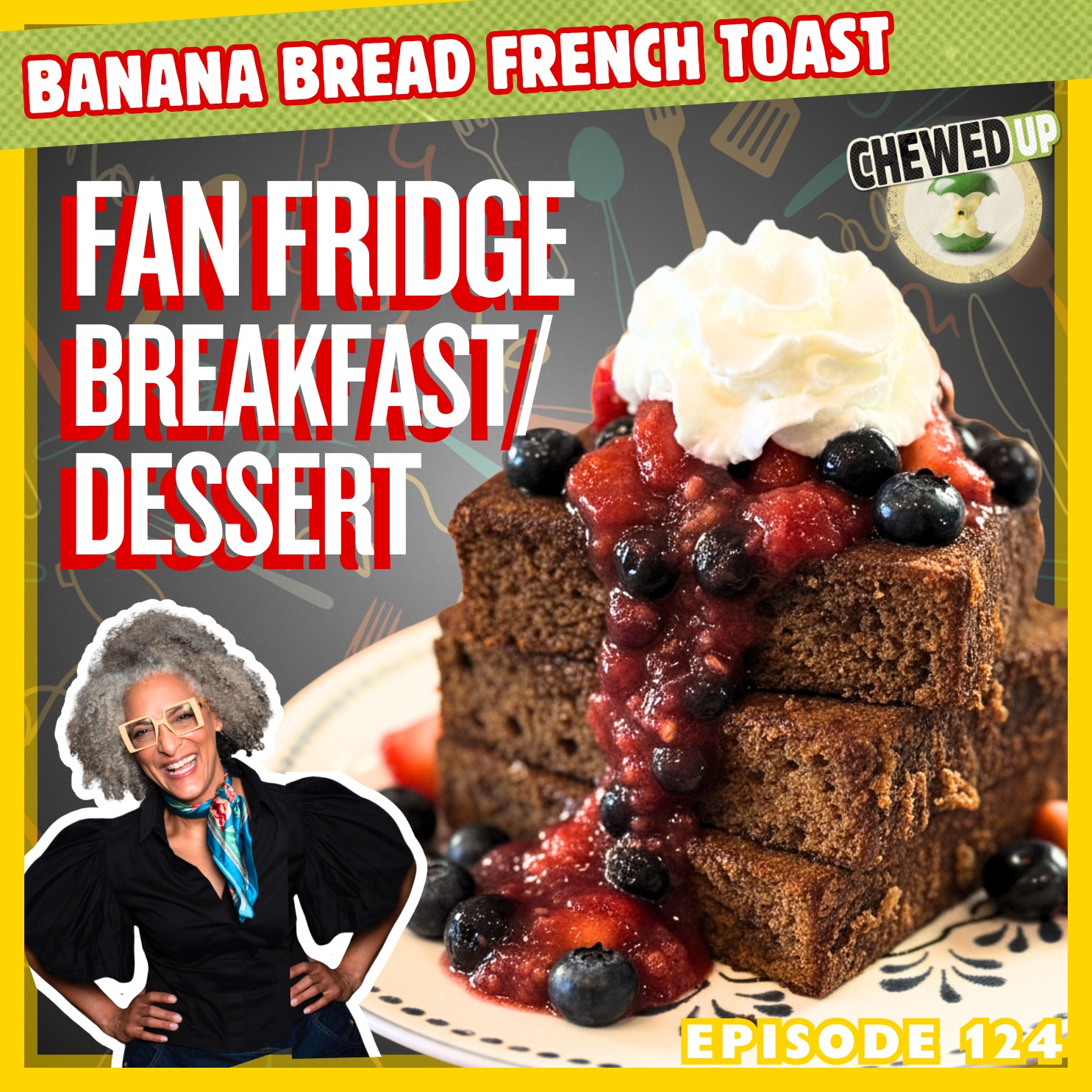 Fan Fridge Week wraps up with a sweet bang as Carla Hall raids the fridge of Eryca from Glen Burnie, Maryland , and turns a random mix of ingredients — banana bread, berries, cottage cheese, and lemonade — into a brunch-ready masterpiece: Banana Bread French Toast with Lemonade-Berry Compote and Chocolate Greek Yogurt . It’s classic Carla: a little Southern soul, a little improv, and a lot of heart. She whips cottage cheese into a smooth custard with eggs, oat milk, maple syrup, and cinnamon for a high-protein French toast base, then tops it with fresh berries tossed in reduced lemonade syrup. Michael and Clinton can’t resist heckling (and taste-testing), especially as Clinton tells a childhood story involving blackberries and an apology to “Laura Stratton.” Between the laughter, the blending, and the slow-mo whipped cream finale, the trio closes out Fan Fridge Week with warmth, wit, and a reminder that even leftovers can become something special. The result: a dish that tastes like banana bread pudding’s classier cousin — and the perfect sweet ending to a wild week. 👉 Grab the full recipe + more at: www.chewedupshow.com/recipes Keywords Carla Hall, Clinton Kelly, Michael Symon, Chewed Up podcast, Fan Fridge Friday, banana bread French toast, cottage cheese custard, lemonade syrup, berry compote, chocolate Greek yogurt, brunch recipes, leftovers, creative desserts, comfort food, easy French toast recipe, home cooking, breakfast for dinner Timestamps 0:00 – Friday energy + Clinton’s sugar breakdown 1:00 – Carla gets her fan fridge: Erica from Glen Burnie, MD 3:00 – Banana bread discovery and idea: French toast! 5:00 – Cottage cheese debate: Michael’s trauma returns 6:00 – Blending the custard + cinnamon cloud chaos 7:00 – Lemonade reduction plan for the berries 9:00 – Clinton’s blackberry childhood apology 10:00 – Sponsor shoutouts: Frontgate, Blues Hog, Casamara Club 12:00 – Carla’s protein custard + fan recipe update 14:00 – Greek yogurt + chocolate hack 16:00 – Banana bread hits the pan — flavor in the brown! 18:00 – Lemonade syrup meets the berries (compote moment) 20:00 – The perfect bite: banana, chocolate, and tangy fruit 23:00 – Dessert confessions: what’s your fridge sweet fix? 24:00 – Bread pudding nostalgia + potato roll secrets 27:00 – Fan mail: favorite guests from The Chew (Carol Burnett, Olivia Newton-John, Dolly Parton, etc.) 33:00 – Double giveaway: Carla’s cookbook + Clinton’s ice mold find 35:00 – Final thoughts on Fan Fridge Week — chaos, connection, and love 🙌 Special Thanks to Our Sponsors Frontgate → Elevated furniture and entertaining essentials that make every spread look stunning. https://www.frontgate.com Blues Hog → Award-winning sauces and rubs from the Champions’ Choice. https://www.blueshog.com Casamara Club → Botanical leisure sodas for mindful sipping without the booze. https://www.casamraclub.com All-Clad → Premium cookware crafted in the USA and trusted by chefs everywhere. https://www.allclad.com Hedley & Bennett → Professional-grade aprons and kitchen gear built for pros and passionate cooks alike. https://www.hedleyandbennett.com Kitchen Designed by Anthony Carrino → https://anthonycarrino.com Produced by Simple Alien → https://www.simplealien.com Camera, Audio and Crew provided by TV Boy → https://tvboynyc.com About Chewed Up Three lifestyle icons reunite with zero filter, strong opinions, and even stronger flavors. Clinton Kelly, Carla Hall, and Michael Symon are back in the kitchen with comedy, comfort food, and unfiltered conversation — served loud. Episodes drop 3x a week: Monday – Appetizers Wednesday – Mains Friday – Desserts Subscribe and turn on notifications so you don’t miss a bite. Want to Watch? → YouTube → Spotify Want to Listen? → Apple Podcasts → Amazon Music → RedCircle Fan Giveaway Every episode we pick one lucky subscriber for a fan giveaway. This Week’s Giveaway: A double giveaway! – Carla Hall’s cookbook – Clinton’s beloved spherical ice mold set (used once, dishwasher safe) 👉 Subscribe and sign up here: https://chewedupshow.com/fangiveaway Advertising Inquiries: https://redcircle.com/brands Privacy & Opt-Out: https://redcircle.com/privacy