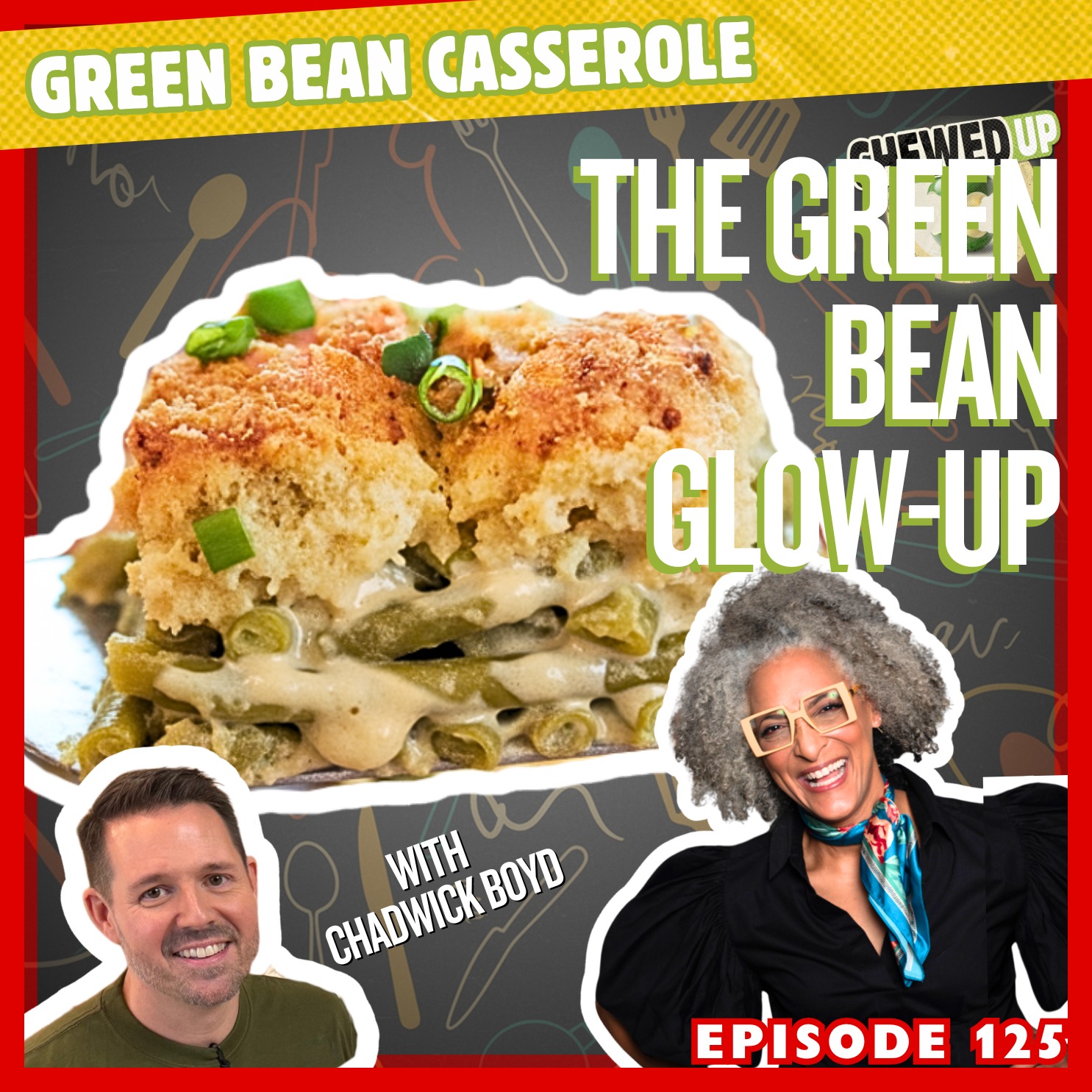 This pre-Thanksgiving episode marks Chewed Up’s 25th installment, and the trio arrives in peak form: Michael’s stomach is questionable, Clinton is fighting with his glasses, and Carla is unbothered as usual. Once the banter settles, Carla kicks off the week with a fully elevated Green Bean Casserole —a recipe crafted by lifestyle expert and longtime friend Chadwick Boyd , who joins the episode to bring technique, history, and a truckload of caramelized onions. Chadwick walks through building the dish from scratch: a silky béchamel, Gruyère cheese, French-cut green beans, and the move that takes this dish from retro to remarkable— French Onion Drop Biscuits baked on top. Along the way, the crew dives into the surprisingly emotional backstory of green bean casserole, mashed potato debates, Campbell’s Soup nostalgia, and a Meta AI fiasco that falsely announced Michael’s divorce. The episode ends with a bubbling, golden casserole that stops everyone mid-sentence, a fan giveaway reveal featuring a Caraway cast-iron duo plus Chadwick’s e-book and T-shirt, and a reminder that sometimes the most comforting dish is the one reinvented with heart. 👉 Grab the full recipe + more at: www.chewedupshow.com/recipes KEYWORDS (SEO) green bean casserole recipe, holiday casserole, French onion biscuits, Chadwick Boyd recipe, Carla Hall green bean casserole, upgraded green bean casserole, Thanksgiving side dishes, béchamel casserole, no canned soup casserole, comfort food recipes, Michael Symon Thanksgiving, Clinton Kelly cooking TIMESTAMPS 00:00 — Michael’s terrible morning 00:48 — Celebrating 25 episodes 01:20 — Pre-Thanksgiving week begins 02:50 — The green bean casserole debate 03:15 — Carla introduces guest Chadwick Boyd 04:00 — The 70-year history of green bean casserole 07:00 — Campbell’s Soup nostalgia 08:00 — Starting the béchamel 09:00 — Fan mail: juicy turkey tips 11:00 — Milk gravy & bechamel 101 13:45 — Clinton vs. progressive lenses 15:00 — Sponsor: Caraway 16:00 — Gruyère, thyme & casserole assembly 18:45 — Frozen vs. fresh green beans 19:30 — Biscuit dough begins 22:00 — Caramelized onions in biscuit dough 24:00 — Dropping the biscuits on top 25:30 — Sponsor: Señorita 26:10 — Sponsor: Frontgate 26:40 — Fan mail: mashed potato showdown 27:45 — Baking the casserole 28:15 — Tasting the dish 29:30 — Chadwick’s 70th anniversary e-book & fundraiser 31:00 — Giveaway time 33:00 — Winner announcement 34:00 — Meta AI’s unhinged “pan wall” summary 36:00 — Wrap up + CTA SPECIAL THANKS TO OUR SPONSORS Señorita → Non-alcoholic full-flavor THC margaritas crafted with real juice & agave. https://senoritadrinks.com Caraway → Non-toxic cookware designed for modern kitchens. https://carawayhome.com Frontgate → Luxury outdoor, entertaining, and home essentials. https://frontgate.com Canopy by Hilton → Thanks for supporting the show. https://hilton.com Kitchen Designed by Anthony Carrino → https://anthonycarrino.com Produced by Simple Alien → https://www.simplealien.com/ Camera, Audio and Crew provided by TV Boy → https://tvboynyc.com/ About Chewed Up Three lifestyle icons reunite with zero filter, strong opinions, and even stronger flavors. Clinton Kelly, Carla Hall, and Michael Symon are back in the kitchen with comedy, comfort food, and unfiltered conversation — served loud. Episodes drop 3x a week: • Monday – Appetizers • Wednesday – Mains • Friday – Desserts Subscribe and turn on notifications. Watch: Spotify → https://open.spotify.com/show/3Z9NDuHH7XP03FXQIhHlQ3 YouTube → https://www.youtube.com/@ChewedUpShow Listen: Spotify → https://open.spotify.com/show/3Z9NDuHH7XP03FXQIhHlQ3 Apple → https://podcasts.apple.com/us/podcast/chewed-up/id1840993910 Amazon → https://music.amazon.com/podcasts/1fc5d229-459b-4334-8970-ce0d6f925982/chewed-up RedCircle → https://redcircle.com/shows/c42dbec1-e576-4927-acc7-f22e988c1a81 Fan Giveaway: This week’s Giveaway: Caraway Cast Iron Dutch Oven + Skillet Duo (Cream) + Chadwick Boyd’s Green Bean Casserole 70th Anniversary E-Book + Green Bean T-Shirt Enter at: https://chewedupshow.com/fangiveaway Advertising Inquiries: https://redcircle.com/brands Privacy & Opt-Out: https://redcircle.com/privacy