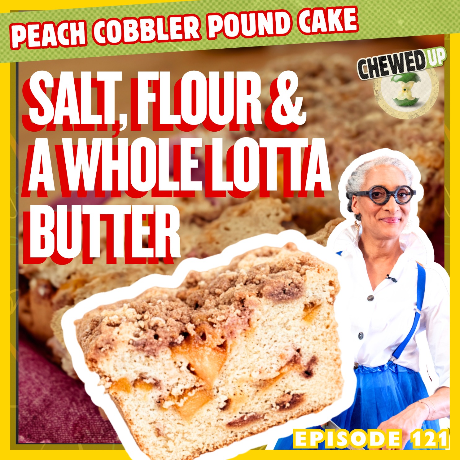 Carla Hall brings the week home with a dessert mashup so good it sparks chaos: Peach Cobbler + Pound Cake . While she caramelizes peaches with brown sugar, cinnamon, and a splash of almond extract, Clinton and Michael spiral into debates over lime-burn rash, butter temperature, and the eternal introvert–extrovert struggle. Carla schools them on baking science — from fake cake flour hacks to slow-rise pound cakes that bake straight from a cold oven. The gang gets nostalgic about grandmas, cookie memories, and the world’s worst cookies (sorry, black-and-white fans). By the end, Clinton’s threatening to throw the mixer off the balcony, Michael’s covered in crumble, and everyone agrees: Carla’s Peach Cobbler Pound Cake is pure holiday comfort. 👉 Grab the full recipe + more at: www.chewedupshow.com/recipes Keywords Peach Cobbler Pound Cake, Carla Hall dessert, Chewed Up podcast, Michael Symon, Clinton Kelly, holiday baking recipe, comfort food, baking tips, crumble topping, pound cake with peaches, cookie debate, kitchen comedy, grandma recipes, Frontgate sponsorship, Blues Hog sauce, All-Clad cookware, Hedley & Bennett aprons Timestamps (YouTube + Spotify) 0:00 – Intro: “Salt and Flour” chaos kicks off the dessert day 1:00 – Peach Prep: Carla caramelizes peaches with brown sugar and preserves 4:00 – Lime Lesson: Clinton’s citrus sunburn horror story 7:00 – Crunch Time: Carla mixes up the crumble while Michael heckles 9:00 – Sponsor Break: Frontgate, Blues Hog, Casamara Club 11:00 – Cake Science: Carla’s secret to perfect pound cake texture 14:00 – Mashup Madness: The trio share their weirdest recipe mashups 17:00 – Introvert Confessions: Who’s a top, bottom, or ambivert? 20:00 – Fan Mail: Holiday cookie memories and grandma stories 24:00 – Cookie Debate: Black-and-white vs rainbow cookies 25:00 – More Sponsors: All-Clad & Hedley & Bennett 30:00 – Taste Test: The finished cake steals the show 31:00 – Giveaway: Carla’s Breadwinner Pan + handmade magnet 33:00 – Wrap-Up: Brenda from Enfield, CT wins the giveaway 🙌 Special Thanks to Our Sponsors Frontgate → Luxury home and entertaining essentials that make every table look incredible. https://www.frontgate.com Blues Hog → Award-winning BBQ sauces and rubs — winner of Best Sauce on the Planet at the American Royal. https://www.blueshog.com Casamara Club → Botanical leisure sodas with sophisticated, low-alcohol vibes. https://www.casamaraclub.com All-Clad → Legendary bonded-steel cookware trusted by pros for decades. https://www.allclad.com Hedley & Bennett → Professional-grade aprons and kitchen gear that blend style + function. https://www.hedleyandbennett.com Kitchen Designed by Anthony Carrino → https://anthonycarrino.com Produced by Simple Alien → https://www.simplealien.com/ Camera, Audio and Crew provided by TV Boy → https://tvboynyc.com/ About Chewed Up Three lifestyle icons reunite with zero filter, strong opinions, and even stronger flavors. Clinton Kelly, Carla Hall, and Michael Symon are back in the kitchen with comedy, comfort food, and unfiltered conversation — served loud. Episodes drop 3× a week: Monday – Appetizers Wednesday – Mains Friday – Desserts Subscribe and turn on notifications so you don’t miss a bite. Want to Watch? → Spotify → YouTube Want to Listen? → Spotify → Apple → Amazon → RedCircle Fan Giveaway Every episode we pick one lucky subscriber for a fan giveaway. This Week’s Giveaway: Carla Hall’s Breadwinner Loaf Pan + Handmade Fridge Magnet 👉 Subscribe and sign up here: https://chewedupshow.com/fangiveaway Advertising Inquiries: https://redcircle.com/brands Privacy & Opt-Out: https://redcircle.com/privacy