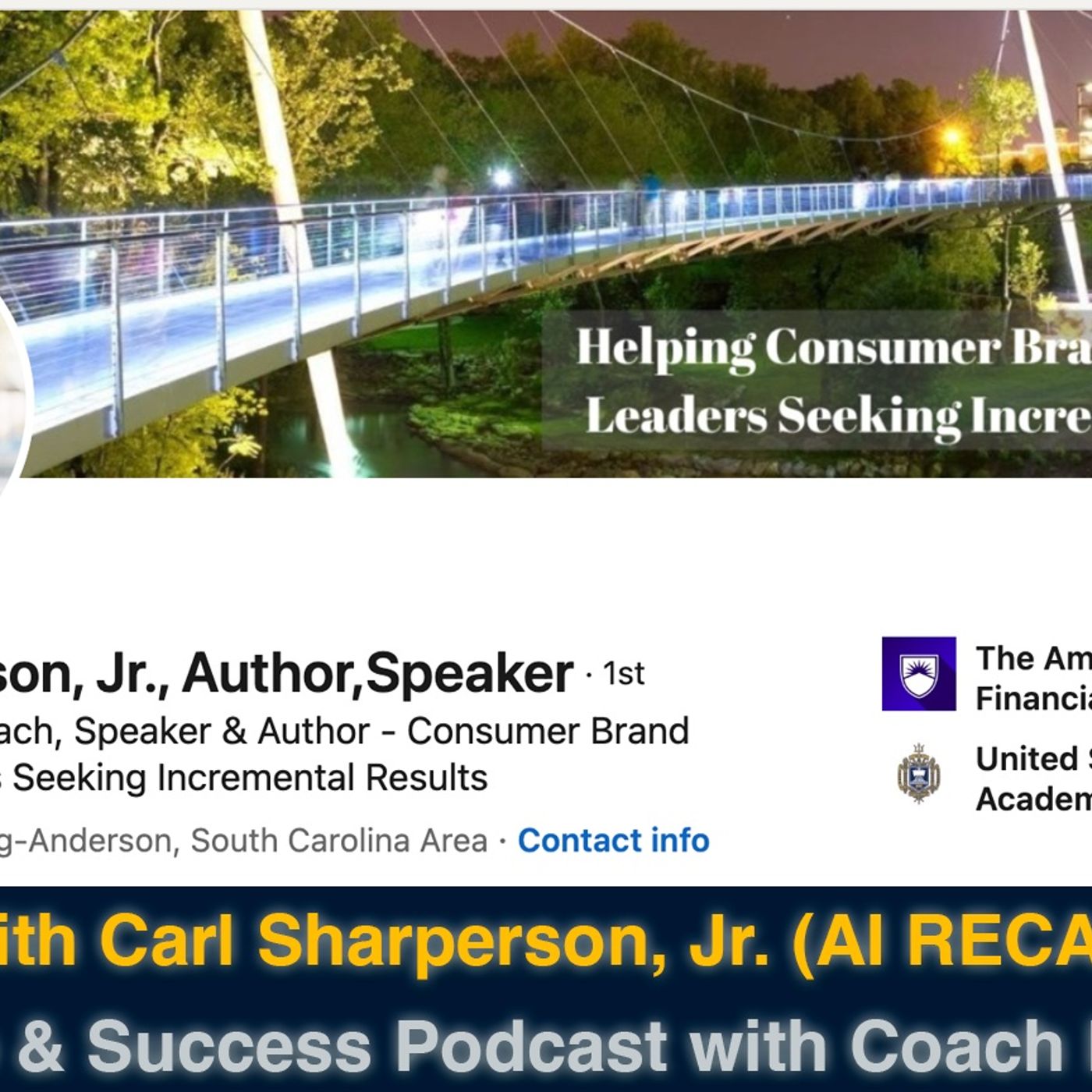 Season 2, Episode 12: Live with Carl H. Sharperson, Jr on Leadership and Success Leadership & Success Podcast Live with Coach BZ: Guest Carl H. Sharperson, Jr, CEO & Executive Coach, Sharperson's Executive Leadership Guest website: https://www.carlsharpersonjr.com/ Guest LinkedIn Profile: https://www.linkedin.com/in/carlsharperson/ Guest Bio: https://www.carlsharpersonjr.com/bio The Live LinkedIn Podcast will eventually be published on Youtube, Facebook Watch, Apple Podcast, Google Podcast, Spotify, Amazon Music/Audible, Pandora, TuneIn + Alexa, iHeartRadio, PlayerFM, and Listen Notes. “Everything rises and falls on leadership.” -Dr. John C. Maxwell “Leadership is the most critical skill. The world will always need leaders to lead others, deploy the next disruptive technology, or execute a business strategy.” -Coach BZ The #LeadershipandSuccessPodcast is available across all major platforms: -Apple Podcast: https://lnkd.in/e9-tNEn9 -Google Podcast: https://lnkd.in/gMPdkiAw -Spotify (soon to include videos): https://lnkd.in/geDwMf2W -Amazon: https://lnkd.in/ejKVEku6 -Audible: https://lnkd.in/gnPqzeDt -TuneIn Alexa: https://lnkd.in/gyKamymk -Pandora: https://lnkd.in/gp8Ey6RH -iHeart Radio: https://lnkd.in/gVT6kFUG -PlayerFM: https://lnkd.in/gYiA9bss -Listen Notes: https://lnkd.in/gFuPA_d7 -YouTube: https://lnkd.in/ef7HmGua -FaceBook Watch: https://lnkd.in/gDJHtSr4 -Rumble: https://lnkd.in/gj_FSiSS -SoundCloud: https://lnkd.in/gU65aQUc -Spreaker: https://lnkd.in/gKSWe7bh -Samsung Podcast: https://lnkd.in/ghDFBgnD -------------- Useful Links -------------- To connect with Bob visit the following links: Bob’s Podcast (includes links to all major Podcast Platforms) https:/www.leadershipandsuccesspodcast.com Bob's LinkedIn https://www.linkedin.com/in/bobfabienzinga/ Bob's Forbes Author Page https://tinyurl.com/bzforbesauthor Bob's Website https://bobfabienzinga.com/ 🔴 Please subscribe for more videos about Leadership and Success, help me build up this Youtube channel: https://tinyurl.com/youtubeleadershipsuccess 🔴 Please subscribe, follow, rate, and add a review to my Apple Leadership and Success Podcast, help me build up this channel: https://tinyurl.com/appleleadershipsuccess 🔴 If you want to become a John C. Maxwell Certified Coach, please sign up at: https://jmt.leadershipandsuccess.net/ #leadershipandsuccesspodcast #leadership #leadershipandsuccess #techleadership #successmindsets